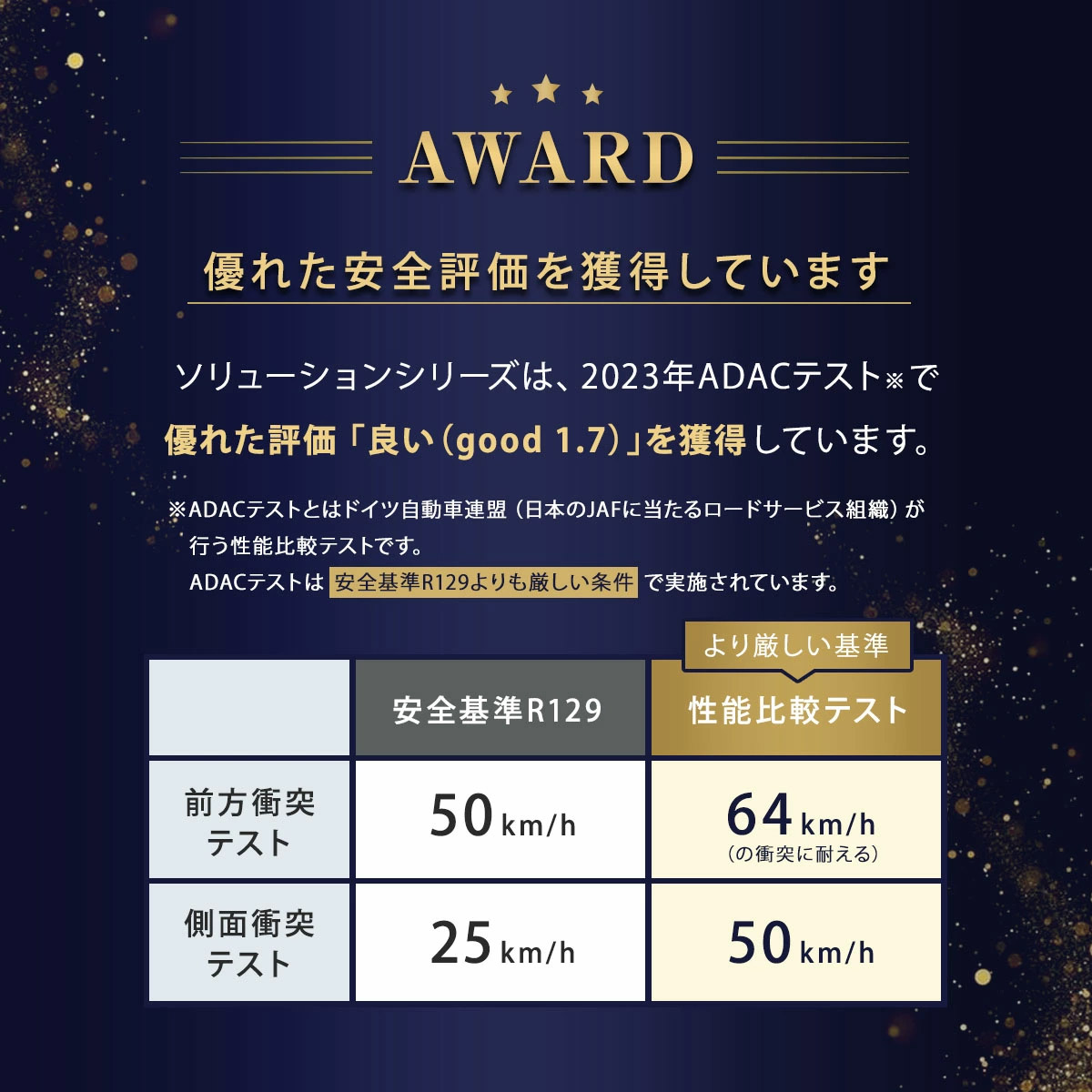 安全基準 | UN R129/04 規格適合 |